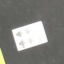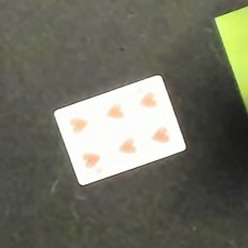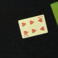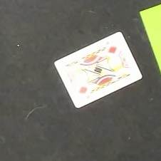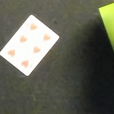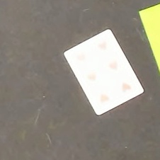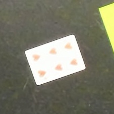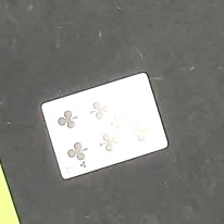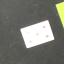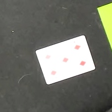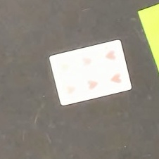 The image shows what appears to be a blank white rectangular shape on a dark surface, but there are no visible rank or suit markings that would identify it as a specific playing card.