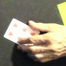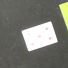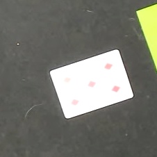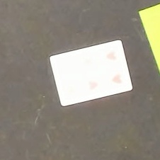 The image shows what appears to be a blank white rectangular shape on a dark surface, but there are no visible playing card markings, suit symbols, or rank indicators that would identify it as a specific playing card.